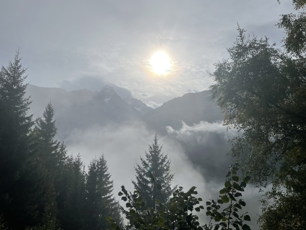 At last, in the early afternoon hours, we reach the high, balcony trail stretching along the side of the mountain. This path overlooks what, for over a year of planning, I have greatly anticipated — incredible views of Mont Blanc, its glaciers, and the wondrous valley below.